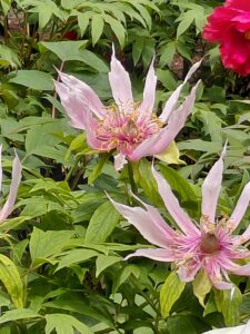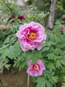 牡丹は、枝分かれした横向きの枝に花をつけるため、